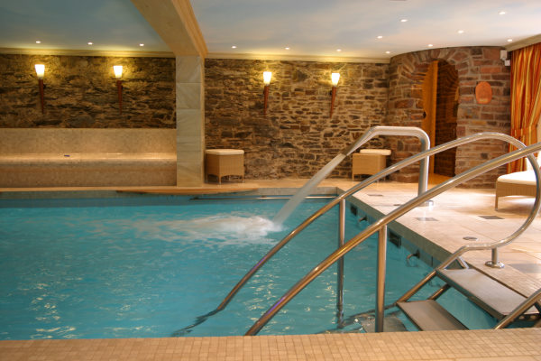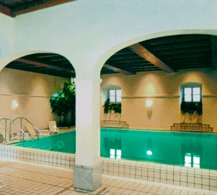Schwimmhallen in alter Scheune, Stall, Burggemäuer, Kloster